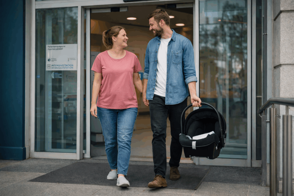 Ab dem dritten Tag nach der Operation können Mama und Baby nach Hause entlassen werden. Es kommt darauf an, wie gut sich die Mama erholt und wie es ihrem Baby geht.